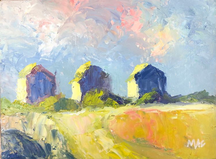 Above right, Cottages at Truro 2, 12″ x 9″, Oil, $400